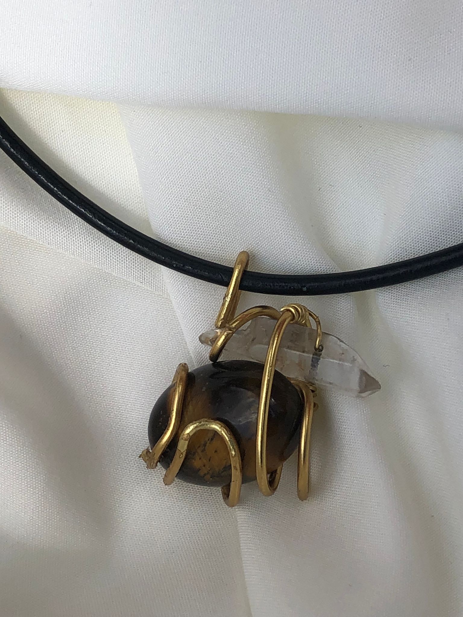 Clear Quartz · Brass · Tiger's Eye Pendant